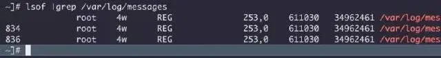1.首先通过losf命令找到使用messages文件的进程的PID和messages文件的FD(文件描述符);