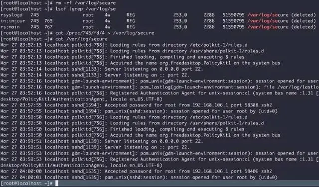 当Linux系统被入侵后,很多入侵者经常会删除系统中的各种日志,包括Web的access和error日志、last日志、messages日志、secure日志等,阻碍应急响应和取证调查,比如rm -rf /var/log。