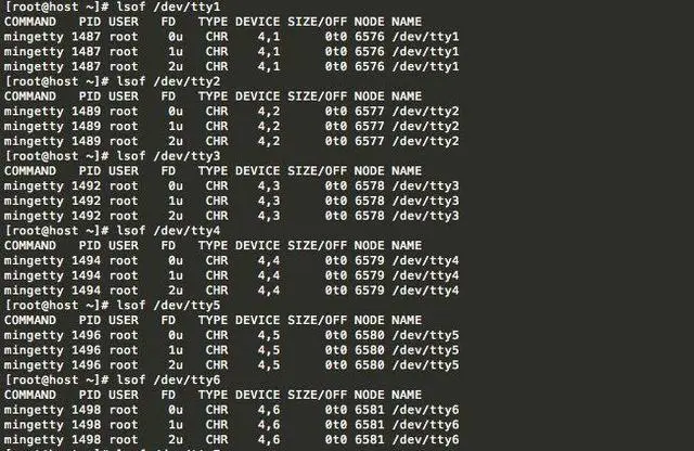 b. 通过查看/dev/tty下文件可以知道文件、设备的进程占用情况。